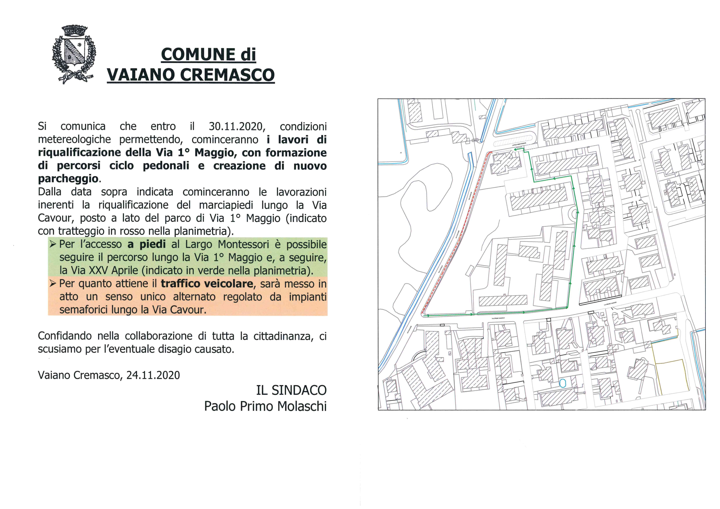 25 Novembre 2020 Tipo articolo: Avviso AllegatoDimensione avviso_lavori_marciapiedi_via_cavour.pdf775.33 KB Area tematica: Lavori pubblici e mobilità urbana Outline Lavori pubblici e mobilità urbanaADOZIONE MASTER PLAN PIANO ATTUATIVO ATI4 E ATTUAZIONE SUB COMPARTO SUD AVVIO LAVORI DI RIQUALIFICAZIONE VIALE LIBERAZIONE AVVIO LAVORI DI RIQUALIFICAZIONE VIALE LIBERAZIONE AVVISO IMPORTANTE INIZIO LAVORI DI RIQUALIFICAZIONE DI VIA I^ MAGGIO INIZIO LAVORI DI RIQUALIFICAZIONE DI VIA I^ MAGGIO INVERSIONE SENSO UNICO VIA MEDAGLIE D'ARGENTO ISTITUZIONE TEMPORANEA DIVIETO DI TRANSITO VEICOLI IN VIA LODIGIANI LELIA E INVERSIONE TEMPORANEA SENSO UNICO DI MARCIA VEICOLI IN VIA MEDAGLIE D’ARGENTO ISTITUZIONE TEMPORANEA DIVIETO DI TRANSITO VEICOLI IN VIA LODIGIANI LELIA E INVERSIONE TEMPORANEA SENSO UNICO DI MARCIA VEICOLI IN VIA MEDAGLIE D’ARGENTO LAVORI DI EFFICIENTAMENTO ENERGETICO E MESSA A NORMA ILLUMINAZIONE PUBBLICA LAVORI DI RIQUALIFICAZIONE VIALE LIBERAZIONE - AVVIO 3^ FASE LAVORI DI RIQUALIFICAZIONE VIALE LIBERAZIONE - AVVIO 4^ FASE LAVORI MESSA IN SICUREZZA VIABILITÀ DEL CENTRO STORICO (VIA LODIGIANI LELIA) NUOVA VIABILITÀ NEL CENTRO STORICONUOVA VIABILITÀ NEL CENTRO STORICO ORDINANZA N. 843 DEL 17.01.2022: ISTITUZIONE DIVIETO DI TRANSITO E SOSTA CON RIMOZIONE FORZATA ORDINANZA N. 843 DEL 17.01.2022: ISTITUZIONE DIVIETO DI TRANSITO E SOSTA CON RIMOZIONE FORZATA Piano Comunale Neve Stagione 2019-2020 Piano Neve anno 2020/2021 Piano Neve anno 2020/2021 Piano Neve anno 2021/2022 Piano Neve anno 2021/2022 Piano Neve anno 2023/2024 RIFACIMENTO MANTO STRADALE VIA LEOPARDIAVVISO SENSO UNICO ALTERNATO VIA I^ MAGGIO AVVISO SENSO UNICO ALTERNATO VIA I^ MAGGIO RIQUALIFICAZIONE E MESSA IN SICUREZZA DELLA VIA CAVOUR – 1° LOTTO VIA SANT’ANTONINO “DIVIETO DI TRANSITO” PER LAVORI DI MANUTENZIONE ASFALTI VIA STRINGA “TRANSITO A SENSO UNICO ALTERNATO” PER LAVORI DI MANUTENZIONE ASFALTI ‹ AVVISO IMPORTANTE su INIZIO LAVORI DI RIQUALIFICAZIONE DI VIA I^ MAGGIO ›