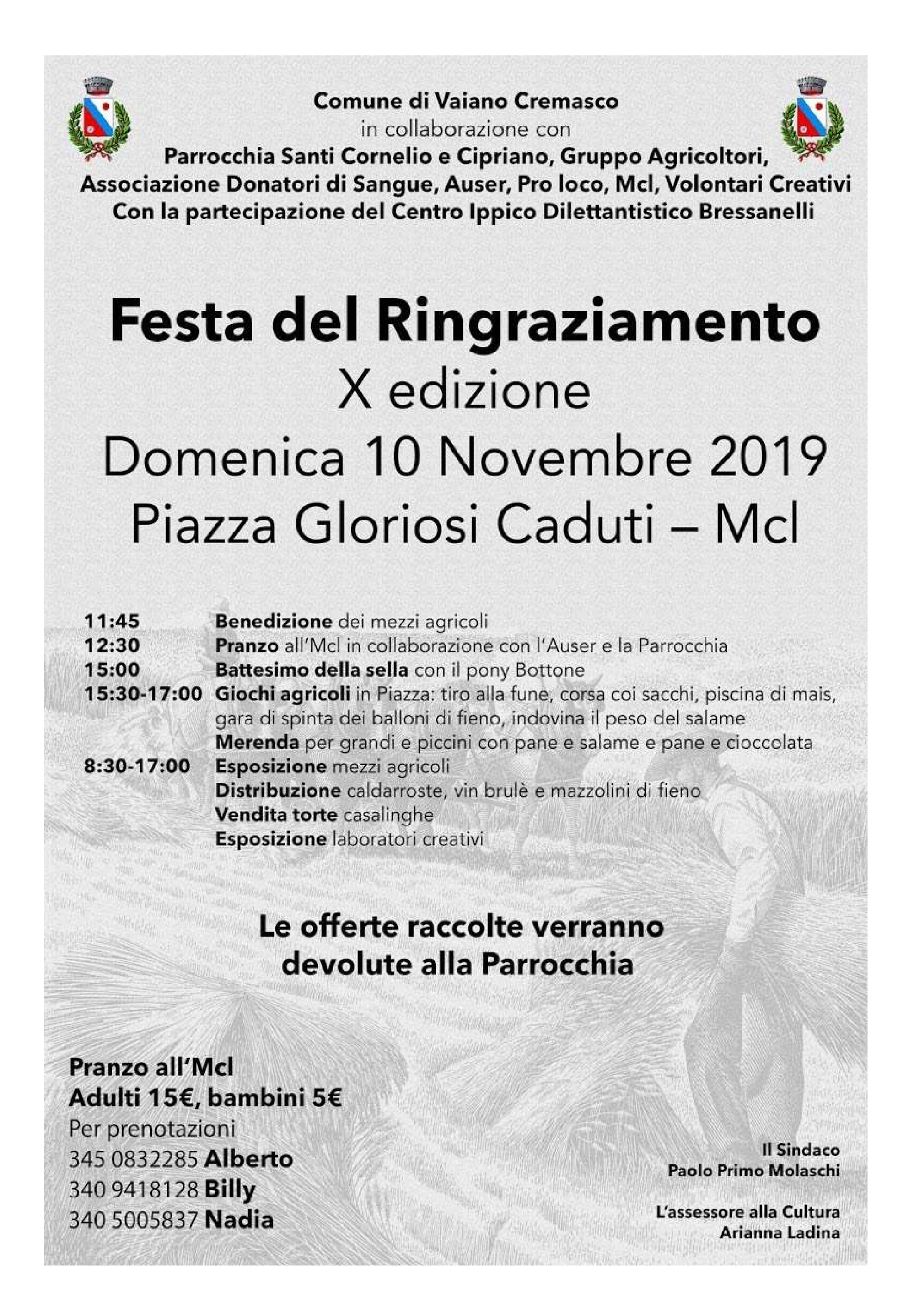- 12:30 Pranzo all'MCL in collaborazione con l'Auser e la Parrocchia
