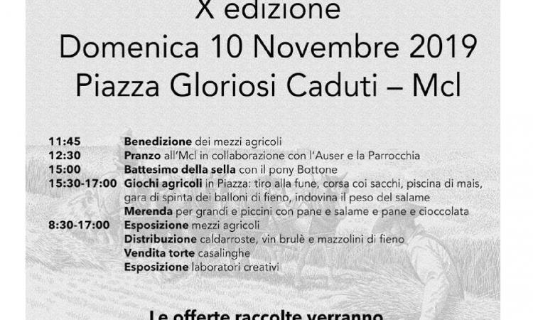 Giochi agricoli in Piazza: tiro alla fune, corsa coi sacchi, piscina di mais, gara di spinta dei balloni di fieno, indovina il peso del salame